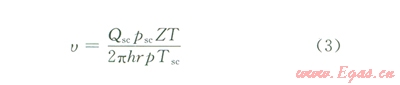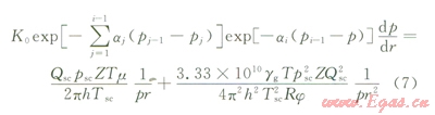 在平面徑向滲流過(guò)程中氣體通過(guò)徑向距離為r時(shí)的滲流速度為: