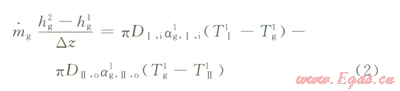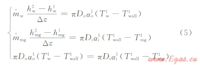 式中下標mg代表該段的NG氣體,wall代表管壁,o代表管外側,i表示管內(nèi)側,其余同上。