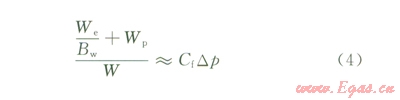 圖1的分析是按孔隙型儲(chǔ)層計(jì)算巖石有效壓縮系數(shù)得到的。裂縫系統(tǒng)的壓縮系數(shù)遠(yuǎn)高于孔隙系統(tǒng),根據(jù)式(4)可知其極限水侵量占可動(dòng)水體儲(chǔ)量的比例會(huì)更大。另一方面,目前流行的巖石有效壓縮系數(shù)計(jì)算方法未充分考慮壓力降低后巖石空隙巾高壓流體支撐作用減退的影響。有研究表明,充填不同流體的多孔巖石彈性模量不同,在相同有效應(yīng)力作用下,充填水的空隙在流體壓力釋放后變形強(qiáng)于氣層[3]。綜合以上分析可知,儲(chǔ)層裂縫發(fā)育的水區(qū)極限水侵量很可能比針對(duì)孑L隙型儲(chǔ)層的預(yù)測(cè)值成倍增大,這是一些與小水體接觸的氣藏開(kāi)發(fā)過(guò)程巾呈現(xiàn)強(qiáng)水侵的原因。