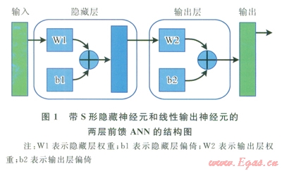 人工神經(jīng)網(wǎng)絡(luò)被廣泛用于許多科學(xué)和工程應(yīng)用領(lǐng)域,例如計算不同純化合物的物理和化學(xué)性質(zhì)[14]。讀者可在其他文獻(xiàn)中找到ANN的工作原理說明[14-15]。在此項研究中,采用了MATLAB軟件來構(gòu)建ANN-QSPR模型。通過ANN工具箱,構(gòu)建了用于建模的兩層前饋ANN。圖l中顯示了兩層前饋ANN的結(jié)構(gòu)。