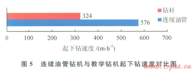 在相同地質狀況和用同一臺鉆井泵的情況下,將連續(xù)油管鉆機與相距35.6m處宏華2號教學鉆機(ZJ40DBS鉆機+頂驅)的鉆井情況進行對比如下: