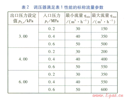 根據(jù)GB 27790-2011《城鎮(zhèn)燃?xì)庹{(diào)壓器》(以下簡稱GB 27790-2011)的規(guī)定,城鎮(zhèn)燃?xì)庹{(diào)壓器靜態(tài)特陛的合格與否需要通過靜態(tài)特性實(shí)驗(yàn)并根據(jù)實(shí)驗(yàn)數(shù)據(jù)繪制靜態(tài)特性曲線圖來判定。對(duì)某一型號(hào)的城鎮(zhèn)燃?xì)庹{(diào)壓器(標(biāo)稱參數(shù)見表l、2)進(jìn)行靜態(tài)特性實(shí)驗(yàn),并按照GB 27790-2011第