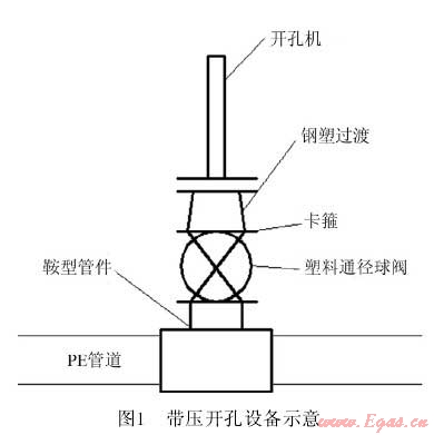 另外一種情況,國(guó)內(nèi)大型塑料制品商結(jié)合自身管材、管件特點(diǎn)開發(fā)出了適用其產(chǎn)品系列的帶壓開孔設(shè)備,比如亞大塑料制品公司的帶壓開孔設(shè)備,見圖1。