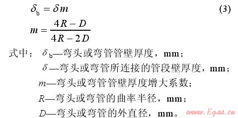 彎頭和彎管的管壁厚度根據(jù)《輸氣管道工程設(shè)計規(guī)范》(GB50251—2003)中公式(3)計算: