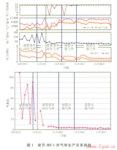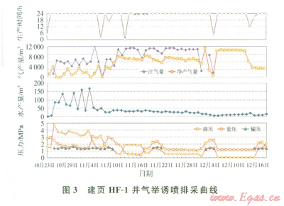 氣舉方式主要有正舉和反舉。通過對建頁HF-l井的分析可看出,采用套管氣舉方式均比油管氣舉效果較好,產(chǎn)量較高且?guī)€(wěn)定。但考慮氣井實際情況(外輸壓力為1.25 MPa),且與產(chǎn)量線性關(guān)系較好,則優(yōu)選套管氣舉方式進(jìn)行排水采氣,即輸壓l.25~1.39MPa,產(chǎn)氣量為4 000~5