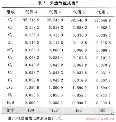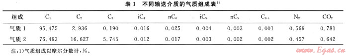 以4種不同組成的天然氣來分析滿足管道運行條件下的氣質(zhì)組成對減壓波特性的影響,其組成如表2所示。