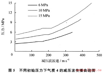 從圖5可以看出,在相同的初始溫度下,隨著初始壓力的降低,起始點的減壓波波速逐漸減小。當減壓波曲線出現(xiàn)“平臺”時,減壓波曲線的“平臺”隨著初始壓力的減小而降低,最終可能消失。