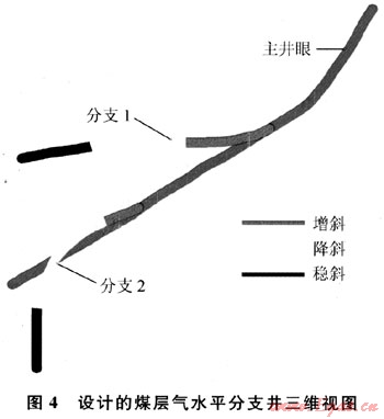 3) 分支類型3:增斜+穩(wěn)斜。軌跡設(shè)計(jì)和控制最簡單,一般在煤層中的延伸距離最短。