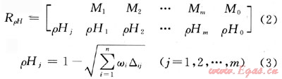 式中RρH為ρ個(gè)事物的H個(gè)模糊特征的復(fù)合物元;Mi為第i個(gè)事物(i=1,2,…,m);wi為第i個(gè)事物評價(jià)指標(biāo)的熵權(quán);△ij(i=1,2,…,n;j=1,2,…,m)為標(biāo)準(zhǔn)模糊物元R0n與復(fù)合從優(yōu)隸屬度模糊物元