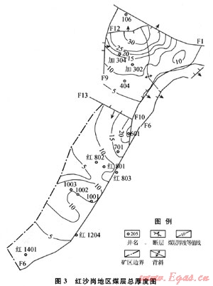 由于受華北板塊的俯沖擠壓作用,北大山剛性隆起,山前因構(gòu)造負(fù)荷效應(yīng)而彎曲沉陷,在北大山隆起和紅沙崗沉陷的接合部位(應(yīng)力集中區(qū))發(fā)生了逆沖斷層(F1),盆緣斷裂F1和馬祖凸起構(gòu)成了紅沙崗主干控制構(gòu)造,在鄰近F1斷層的北部,一般坳陷較深,煤系地層沉積較厚,而遠(yuǎn)離F1、近馬祖隆起的南部地帶,則含煤巖系沉積厚度小,甚至地層尖滅,含煤性也差。因此,F(xiàn)1盆緣斷裂是有利于成煤和護(hù)煤的構(gòu)造帶。