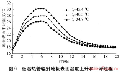 ① 熱管輻射地板在供水溫度為35~45℃時(shí)即可滿足采暖要求,比常規(guī)塑料埋管地板要求的供水溫度降低5℃左右。熱管輻射地板可以與低品位能源如太陽能、地?zé)崮艿戎苯咏Y(jié)合應(yīng)用于采暖系統(tǒng)。