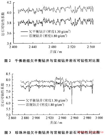 2 欠平衡與常規(guī)鉆井的巖石可鉆性對比