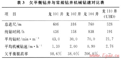 從表3可以看出,在沙一段至馬鞍山組層段,與常規(guī)鉆井技術(shù)相比,欠平衡鉆井能夠明顯提高機(jī)械鉆速,其中,與龍104井對比,最高可達(dá)206%。