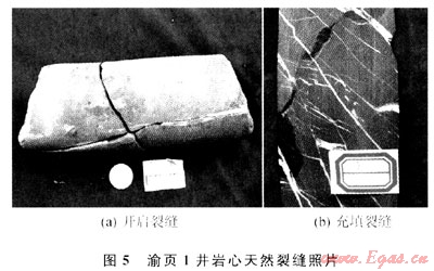 對(duì)于新完鉆的頁(yè)巖氣井,要獲得工業(yè)性氣流,必須采用水力壓裂改善儲(chǔ)層的滲透能力,在進(jìn)行壓裂作業(yè)時(shí),應(yīng)該結(jié)合完井方式,儲(chǔ)層特點(diǎn)選擇合適的壓裂工藝。根據(jù)國(guó)外頁(yè)巖氣開(kāi)發(fā)的經(jīng)驗(yàn),深度較淺(低于1500m)或壓力較低的頁(yè)巖儲(chǔ)層一般使用氮?dú)馀菽瓑毫?,中等深?1500~3000m)的儲(chǔ)層則適宜使用清水壓裂開(kāi)采。氮?dú)馀菽瓑毫褜?duì)頁(yè)巖儲(chǔ)層無(wú)傷害,成本低,收益快,是我國(guó)頁(yè)巖氣勘探開(kāi)發(fā)初期淺井開(kāi)發(fā)比較合適的壓裂方式,美國(guó)頁(yè)巖氣開(kāi)發(fā)早期曾使用氮?dú)馀菽瓑毫眩诋?dāng)時(shí)取得了良好的效果,現(xiàn)在在某些特殊儲(chǔ)層壓裂仍然使用[23~24]。我國(guó)頁(yè)巖氣儲(chǔ)層除少數(shù)地區(qū)埋深較淺外,大多數(shù)埋深大于1500m,對(duì)于埋深小于1500m的有利儲(chǔ)層或開(kāi)發(fā)前期的勘探淺井,可以嘗試使用氮?dú)馀菽瓑毫?;?duì)于埋深在1500~3000m的有利儲(chǔ)層,清水壓裂是最適宜的壓裂方式。對(duì)于開(kāi)采長(zhǎng)度(厚度)大的頁(yè)巖氣井,可以結(jié)合儲(chǔ)層的特點(diǎn),嘗試使用清水壓裂與多級(jí)壓裂相結(jié)合的水力壓裂技術(shù);對(duì)于埋深在3000m以下的儲(chǔ)層,考慮到開(kāi)采成本和技術(shù)的可行性,可暫時(shí)不用開(kāi)發(fā)。2009年完鉆的渝頁(yè)1井是我國(guó)第一口勘探淺井,通過(guò)對(duì)渝頁(yè)1井的巖心分析,我國(guó)上揚(yáng)子地區(qū)龍馬溪組頁(yè)巖天然裂縫系統(tǒng)較發(fā)育,蒙脫石含量少,水敏性弱,不同深度含氣性各異,因此可采用清水分段壓裂(圖5)。
