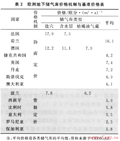1 國(guó)外地下儲(chǔ)氣庫(kù)價(jià)格機(jī)制