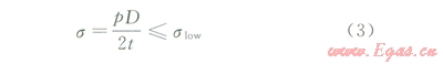 式中P為管道試壓壓力或運(yùn)行壓力,MPa;D為管道外徑,m;t為管道壁厚,m;s為內(nèi)壓產(chǎn)生的環(huán)向應(yīng)力,應(yīng)不超過(guò)管道的屈服強(qiáng)度,MPa。