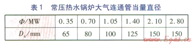 鍋爐房設計時,可根據表1核對鍋爐上的大氣連通管的直徑是否合適。