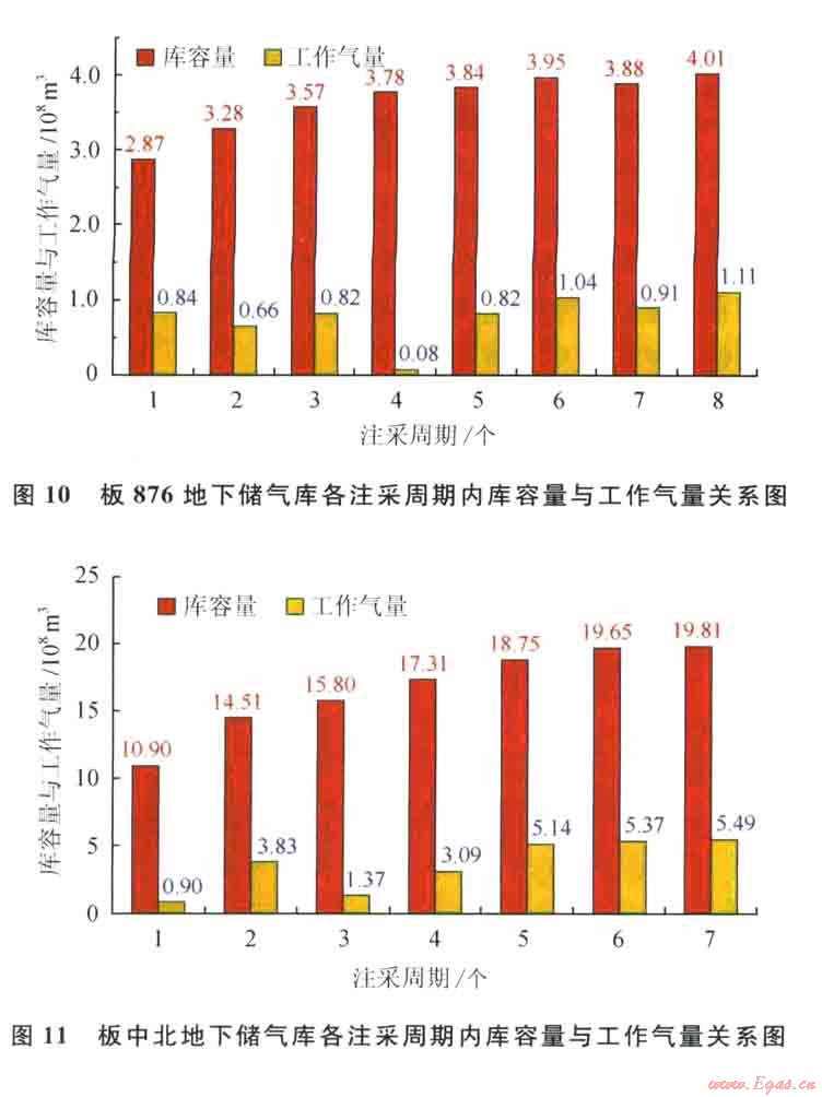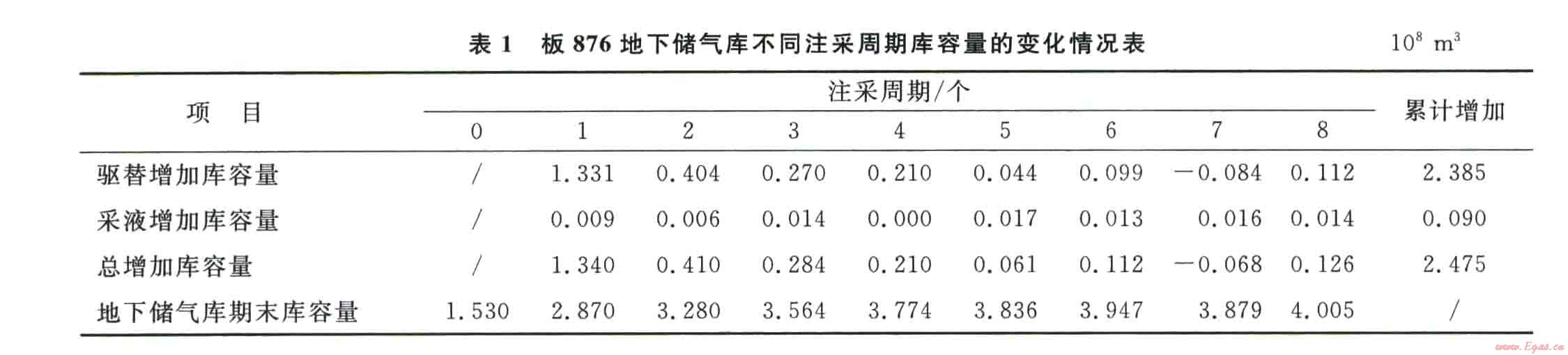 表1 板876地下儲(chǔ)氣庫(kù)不同注采周期庫(kù)容量的變化情況表