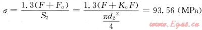 參考《機械設計基礎》[9],當螺栓受到殘余鎖緊力和管線氣體壓力的共同作用后的每根螺栓螺紋小徑截面上的應力為: