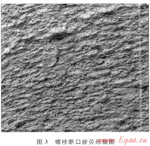 綜合以上分析推斷4#、5#、6#、7#螺栓在過高的交變應力和腐蝕作用下產(chǎn)生了疲勞裂紋,在疲勞裂紋擴展到一定程度時,螺栓因受力過載發(fā)生全部斷裂。結(jié)論為: