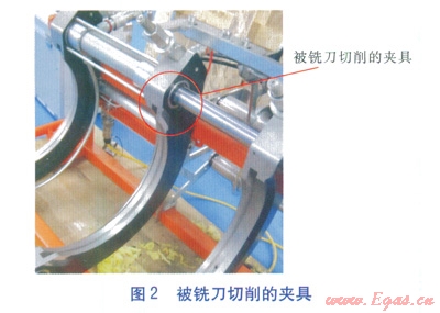 品牌l自動(dòng)熱熔焊機(jī)不具備自動(dòng)停止銑切功能,即使銑刀產(chǎn)生銑切機(jī)架,銑切過(guò)程也不會(huì)自動(dòng)停止。被銑刀切削的夾具見(jiàn)圖2。