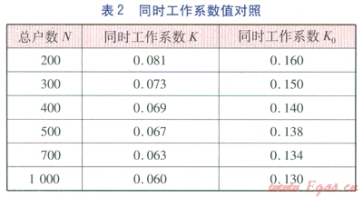 將計算結(jié)果與GB 50028—2006((城鎮(zhèn)燃?xì)庠O(shè)計規(guī)范》附錄F中推薦的同時工作系數(shù)值(設(shè)為K0)進(jìn)行對照,見表2。