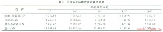 表3、4分別為平臺(tái)在該海域所受到各方向環(huán)境載荷、彎矩計(jì)算結(jié)果。
