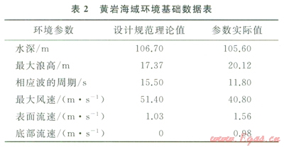 對比表2中數(shù)據(jù),得知該海域的最大浪高、表面和底部流速等環(huán)境參數(shù)數(shù)值已超過平臺(tái)操船手冊[12]規(guī)范的數(shù)值,因而在正常條件下,該型平臺(tái)不能在該海域進(jìn)行生產(chǎn)作業(yè)。