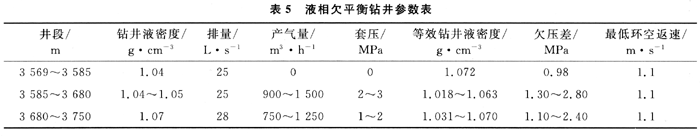 實(shí)際第三次開(kāi)鉆欠平衡鉆進(jìn)中,采用液相欠平衡技術(shù)達(dá)到了欠平衡條件,充氣設(shè)備一直待命未用。其施工過(guò)程可以分為兩個(gè)階段。