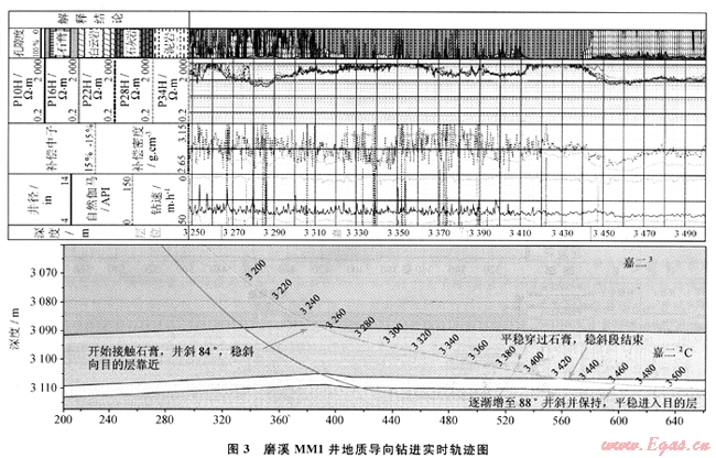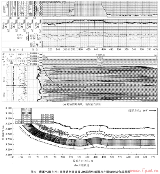 摘要:隨鉆地質(zhì)導(dǎo)向技術(shù)實現(xiàn)了以井下實際地質(zhì)特征來確定和控制井眼軌跡,達(dá)到了提高有效儲層鉆遇率的目的,對于高效開發(fā)復(fù)雜氣藏具有重要意義。為此,簡述了地震、測井聯(lián)合反演和三維可視化建模在地質(zhì)導(dǎo)向儲層預(yù)測中的作用,然后結(jié)合四川盆地中部磨溪?dú)馓颩M1水平井等多口井的產(chǎn)層導(dǎo)向鉆進(jìn)情況,總結(jié)出采用隨鉆測井(LWD)資料確定中靶點(diǎn)和鉆頭在目的層的位置,以及井眼軌跡、地層巖性剖面和隨鉆測井曲線綜合成圖與調(diào)整井眼軌跡等方法,并以此來指導(dǎo)磨溪?dú)馓锶B系嘉陵江組白云巖儲層的地質(zhì)導(dǎo)向鉆井施工,明顯提高了水平井目的層的鉆遇率和地質(zhì)導(dǎo)向鉆井的成功率,效果良好,值得推廣應(yīng)用。