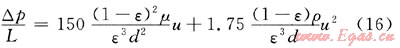 計算顆粒床層阻力采用經(jīng)典Ergun方程: