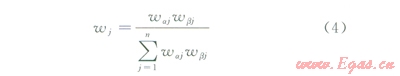 最后,對各指標(biāo)的變異系數(shù)歸一化處理,計算指標(biāo)權(quán)重(wj):