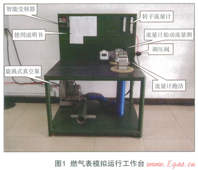 為此,工作人員提出了自行設(shè)計(jì)制造燃?xì)獗砟M運(yùn)行工作臺(tái)的方案,工作臺(tái)南旋渦式真空泵、智能變頻器、轉(zhuǎn)子流量計(jì)、調(diào)壓閥、硅膠墊及不同口徑氣管等組成,共有兩路氣源:一路來自旋渦式真空泵,流量能達(dá)到(0~190)m3/h,;另一路空氣壓縮機(jī),通過減壓閥將0.75MPa的氣壓降到0.05MPa,末端安裝兩個(gè)轉(zhuǎn)子流量計(jì),將流量控制在(0.016~0.4)m3。