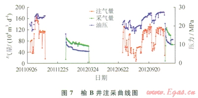 榆林南注采試驗井榆A和榆B井注氣過程中,井筒壓力損失分析見表7所示,計算壓力損失與實測的誤差小于2%?,F(xiàn)場試驗表明,室內(nèi)節(jié)點分析軟件模擬計算結(jié)果符合氣井實際運行工況。