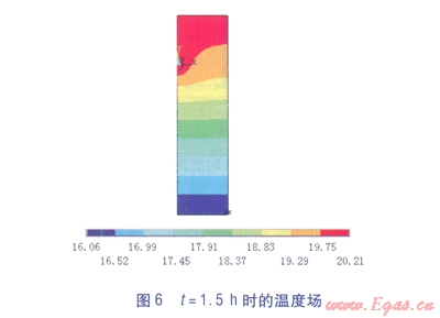 ①運(yùn)用有限元軟件ANSYS的熱分析功能,模擬得到了埋地管道氣密性試驗(yàn)過程中溫度場(chǎng)隨時(shí)間的變化情況:試驗(yàn)開始階段,管道溫度下降較快,30min后,管道溫度下降速度減緩,經(jīng)過1.5h后,管內(nèi)外溫度場(chǎng)基本達(dá)到穩(wěn)定。