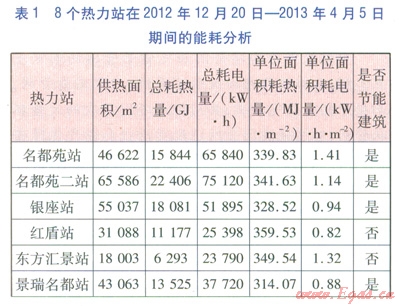 為了保證數(shù)據(jù)的可靠性,匯總了8個(gè)熱力站(均屬于即墨金源熱力公司)在2012年12月20日—2013年4月5日期間的能耗分析,見表1。從表1可知,大華正信熱力站耗熱量遠(yuǎn)低于其他非節(jié)能建筑熱力站,且不高于節(jié)能建筑耗熱量的平均值;大華正信熱力站耗電量遠(yuǎn)低于其他熱力站,耗電量約為其他熱力站的33%。