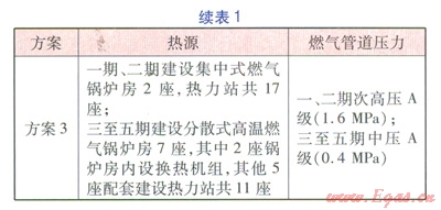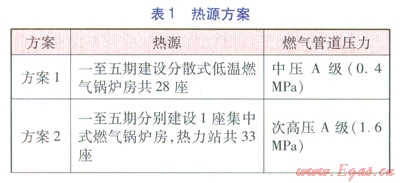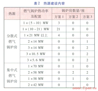 一般而言,熱源方案的確定是以“保障供熱安全,技術(shù)工藝合理,工程投資經(jīng)濟(jì),環(huán)保效益突出”為原則,從區(qū)域總體規(guī)劃及大氣污染治理的總體要求出發(fā),從技術(shù)、經(jīng)濟(jì)、工程實(shí)施可行性等多角度進(jìn)行比選。針對本工程的區(qū)域特點(diǎn),在常規(guī)的比選條件的基礎(chǔ)上,結(jié)合總體規(guī)劃的分期開發(fā)要求,提出了3種熱源方案進(jìn)行比選(見表l),3種方案均采用分期建設(shè)方式。