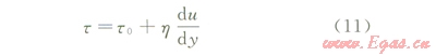 對水合物漿的流變性研究發(fā)現(xiàn),水合物漿在低濃度下可視為牛頓流體,而在高濃度下,則表現(xiàn)為非牛頓流體,較為常用的表征模型為Bingham模型[10]: