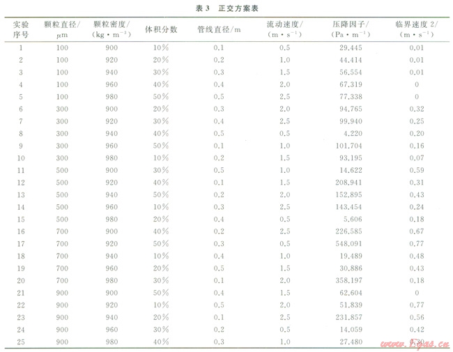 從表3及方差分析可以看出,顆粒直徑對“臨界速度2”的影響效果最大,因此,開展水合物顆粒流動過程中的生長、碰撞以及聚結(jié)研究對降低“臨界速度2”,進(jìn)而保證管線的安全輸送具有重要意義,同時,以上結(jié)論還對“冷流技術(shù)”實現(xiàn)的作用原理(防止水合物聚結(jié),減小水合物顆粒直徑,進(jìn)而降低臨界速度)進(jìn)行了闡釋[13-15]。
