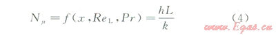 通過式(4)和(5)將對流換熱系數(shù)(h)的問題,轉(zhuǎn)為解決努賽爾系數(shù)的問題。