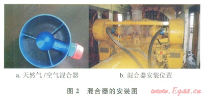 天然氣經(jīng)過安裝在柴油機(jī)空氣過濾器和渦輪增壓器之間的混合器進(jìn)入氣缸參與燃燒,經(jīng)改造后的混合燃料發(fā)動(dòng)機(jī)能維持柴油機(jī)相同的性能。混合燃料發(fā)動(dòng)機(jī)可以在100%柴油模式和混合燃料模式之間自由切換,并且維持轉(zhuǎn)速和負(fù)荷不變。
