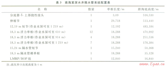 根據(jù)上述隔水管系統(tǒng)配置可以很方便形成隔水管下放列表,用以指導(dǎo)現(xiàn)場(chǎng)作業(yè)。