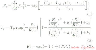 本次熱史模擬研究采用EASY%R。方法,所用化學動力學模型由Sweeney和Burnham等人提出[25]: