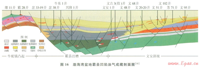 渤海灣盆地油氣勘探大規(guī)模始于20世紀(jì)50年代;60-80年代是陸地區(qū)油田發(fā)現(xiàn)的高潮期,先后發(fā)現(xiàn)了勝利油田、大港油田、華北油田、遼河油田、中原油田;20世紀(jì)80年代以來,渤海海域接連發(fā)現(xiàn)一批大油田。渤海灣盆地目前已發(fā)現(xiàn)數(shù)百個油田及一批中小氣田;原油儲量累計上百億噸,天然氣儲量累計約2000×108m3,主要是溶解氣;石油主要形成于新生界,氣層氣主要形成于古生界;呈現(xiàn)出原油非常富、天然氣相對少的格局。