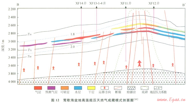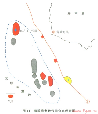 鶯歌海盆地油氣勘探始于20世紀(jì)50年代,經(jīng)過多年來持續(xù)不懈地勘探,在鶯中凹陷中央背斜帶的背斜和巖性圈閉獲得了一批重要發(fā)現(xiàn),其中東方l-l氣田和東方l3氣田(包括東方l3-1和東方13-12)都是千億立方米級別的大氣田??碧脚c研究成果均顯示鶯歌海盆地是一個氣型盆地。