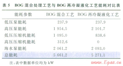 4)BOG進入再冷凝器前進行預冷,可在處理相同BOG量時降低再冷凝器的壓力,從而節(jié)約壓縮機的能耗,節(jié)約率達l8.2%。