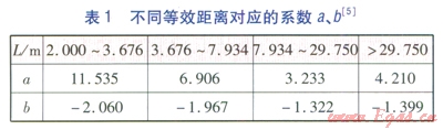 不同等效距離對(duì)應(yīng)的系數(shù)a、b見表l[5]。