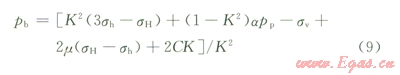 將式(4)帶入Mohr-Coulumb強(qiáng)度條件式便可求得發(fā)生A型剪切破裂的破裂壓力計(jì)算公式為: