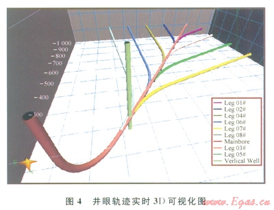 5)鉆井叮視化模塊。實(shí)現(xiàn)地面和井下信息的3D可視化,給技術(shù)人員和管理人員形象直觀地顯示實(shí)時(shí)數(shù)據(jù),輔助決策。3D可視化應(yīng)實(shí)現(xiàn)包括實(shí)時(shí)井眼軌跡、實(shí)時(shí)地質(zhì)模型和實(shí)時(shí)井眼狀況等整個(gè)鉆井過(guò)程的實(shí)時(shí)可視化,最終還應(yīng)該能夠?qū)崿F(xiàn)從地面設(shè)備到井下環(huán)境的一體化仿真。