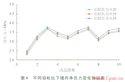 在給定儲(chǔ)層條件下變化水平主應(yīng)力差值,考察水平主應(yīng)力差值1MPa、3MPa、6MPa等3種條件對(duì)應(yīng)力陰影的影響。結(jié)果表明:隨著應(yīng)力差的增大凈壓力值變小,所形成的應(yīng)力陰影效應(yīng)也逐級(jí)變小,儲(chǔ)層應(yīng)力差的越小,形成的誘導(dǎo)應(yīng)力范圍越大,對(duì)鄰近段裂縫改造的陰影效應(yīng)越大,導(dǎo)致裂縫間的相互作用越強(qiáng),促使裂縫發(fā)生轉(zhuǎn)向,形成復(fù)雜裂縫網(wǎng)絡(luò)。